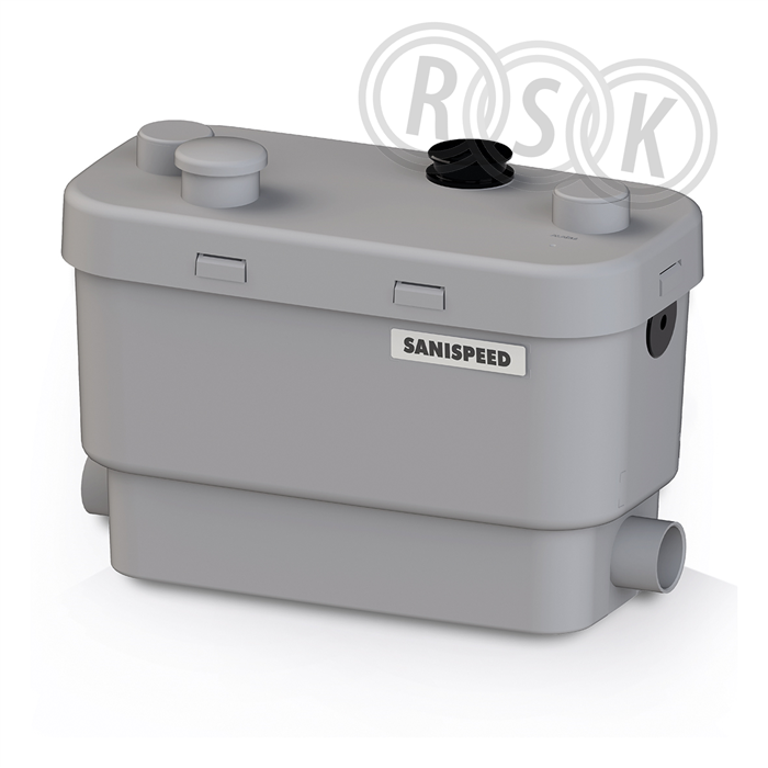 SANISPEED + den tysta bdt-pumpen för kök och tvättstuga. 4 inloppsanslutningar 40mm för t ex tvätt- och diskmaskin, mindre badkar. Max h=7m, max horisontell pumpning=70m. Max temp 75 gr.C. Nominell effekt 400W, 220V/50Hz. Rekommenderat tillbehör: Batteridrivet larm, Rsk:5886541 Sanialarm