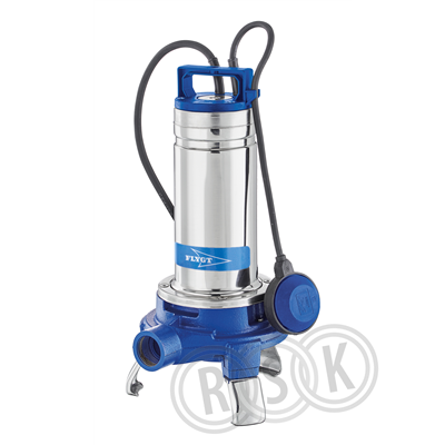 Flygt DXGM25-15. Enfas dränkbar centrifugalpump med inbyggt motorskydd och nivåvippa. Försedd med kanalhjul och tuggerfunktion, främst avsedd för avloppsvatten. Materialspecifikation: Pumphus Gjutjärn, Axel AISI 304, Inre tätning SiC/SiC/NBR, Yttre tätning NBR , Motorkåpa AISI 304, Pumphjul Tecknopolymer, O-ringar NBR, Skäranordning DIN 1.4535. Anslutning: Invändig gänga Rp1¼" (32 mm). Stämpeldata: 1/230 V/50 Hz, 8,5A, 1,5 kW , 2850 RPM. Försedd med 10 m kabel typ H07RN-F, Inbyggd startkondensator, Vätsketemperatur max 35 °C. Vikt 23 Kg.