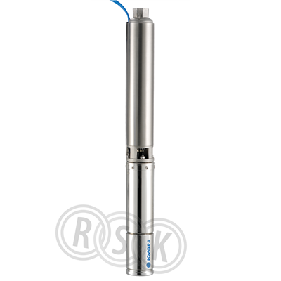 Lowara 4GS11T-L4C borrhålspump (4") med 14 pumphjul, avsedd för borrade brunnar, för bland annat dricksvatten och bevattning. Vid montage utanför borrhål krävs kylmantel. Behöver kompletteras med motorskydd. 1,7 m kabel (dricksvattengodkänd) med kontakt ingår. GS seriens pumpkonstruktion är mycket slitstark emot sand tack vare dess flytande pumphjul som sköljer bort sanden vid varje uppstart, pumpen har även som standard en intregrerad backventil i rostfritt stål. Flödesområde 0-5,4 m³/h, Tryckområde 94-30 m. Materialspecifikation: Pumphus AISI 304, Pumphjul PPS, Axel AISI 304, O-ringar NBR, Motor AISI 304. Diameter 99 mm, Nedsänkningsdjup motor max 300 m, Anslutning: Invändig gänga Rp1¼", Temp: 0 - 35 °C, Vikt: 14,5 Kg. MEI 0,4. 3-fas, 400 V. 3,4 A. 1,1 kW, 2830 RPM, IP 68, F (155°C). Dricksvattengodkänd Plattkabel 4G 1,5mm², 1,7 m, med kontakt för motor L4C,