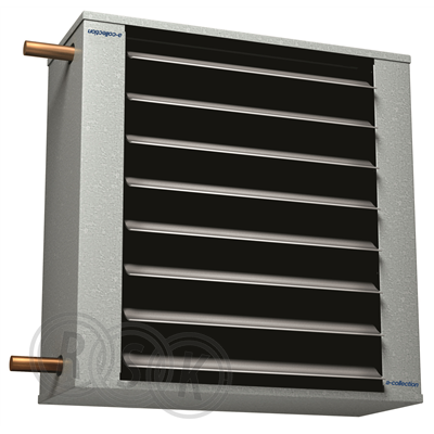 Fläktluftvärmare Funktionell fläktluftvärmare för vattenanslutning. Användningsområden Fläktluftvärmare är avsedd för vattenanslutning och är lämplig i lokaler där värmefläktar traditionellt används såsom industrilokaler, verkstäder och lagerlokaler. kan monteras i tak eller på vägg. Genom att vända fläktluftvärmaren är röranslutning möjlig på båda sidor. Design Fläktluftvärmare har en kompakt och funktionell design som passar väl in i de användningsområden den är avsedd för. Fläktluftvärmare för vattenanslutning, effekt ca 7,1 kW vid vatten 60/40°C och +15°C.