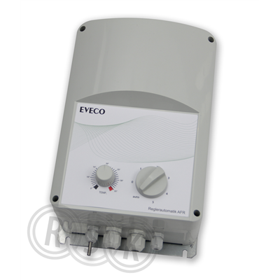 AFR är en varvtalsreglering och elektronisk termostat i ett. Varvtalsregleringen sker genom en 5 stegs transformator, och man kan välja varvtal själv eller låta reglerautomatiken välja varvtal utifrån temperaturskillnaden mellan är och börvärde. Temperaturgivaren är vid leverans monterad i en strypnippel, men kan om så önskas flyttas ut till annan plats om så önskas. Max 50m kabellängd till givaren.
