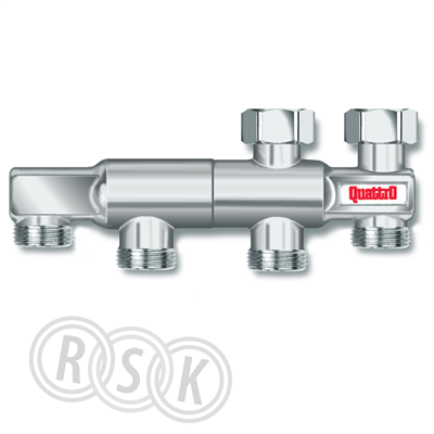 Quattro 2-rörsfördelare. Anslutningar med 2 lekande muttrar mot radiatorn och 4 gängor M22 x 1,5 mm för anslutning av rör.